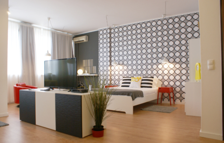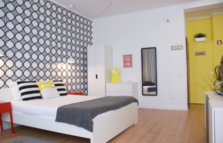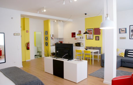 Descrição: Projecto de arquitectura de interiores, para conversão de escritório em apartamento para alojamento local. Decoração do espaço considerando algum mobiliário existente. Veja o antes e o depois abaixo, na galeria.